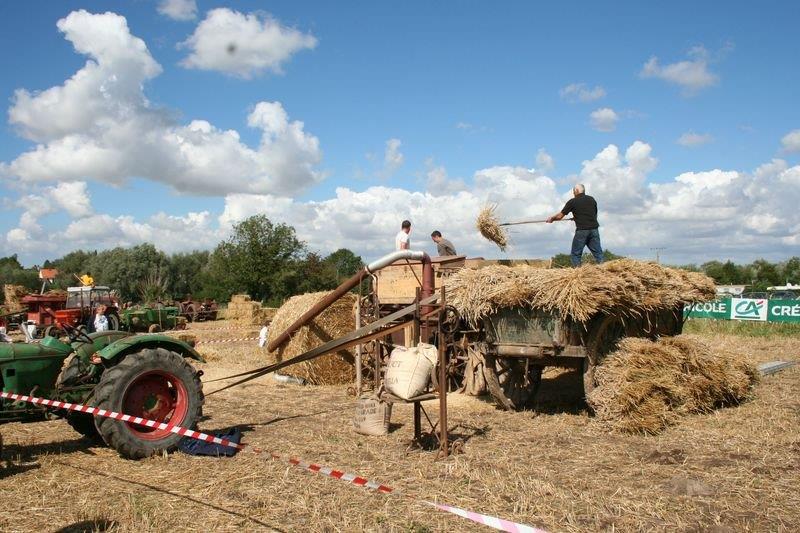 Fête de la moisson, préparation du site avec le battage du champ de blé