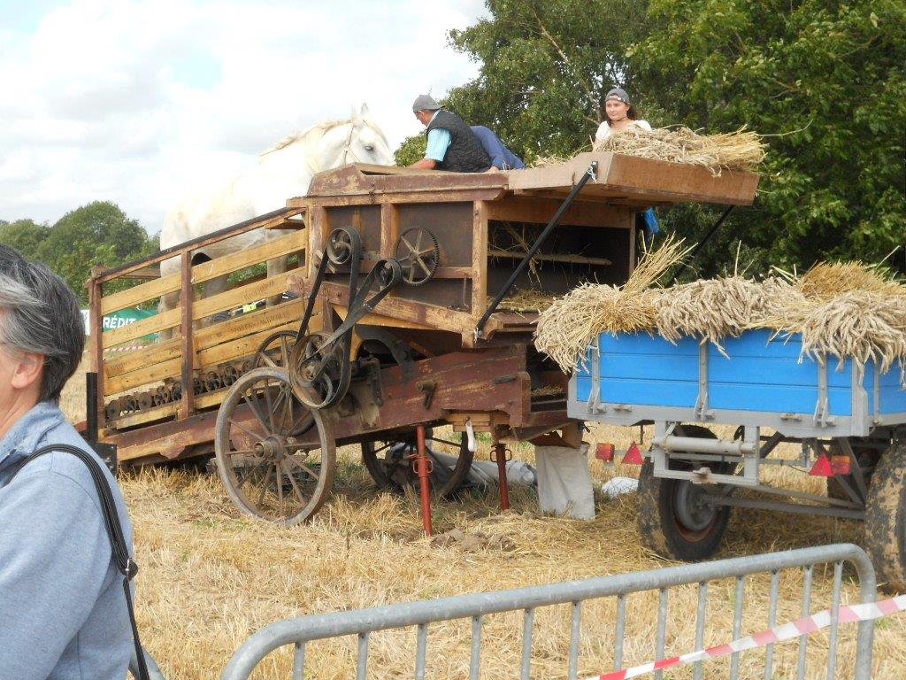 Fête de la moisson, préparation du site avec le battage du champ de blé